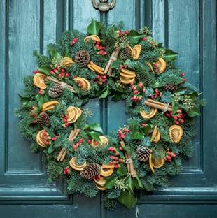 西方國家圣誕節(jié)其間掛在家門口用的裝飾品,通常用綠色的枝葉或藤條(松毛、松針等)和銀色的金屬及金色的鈴鐺配以紅色的緞帶組成主色調(diào)綠、白、黃、紅代表歡樂喜慶上面寫著MERRY CHRISMAS或者簡寫為X'mas