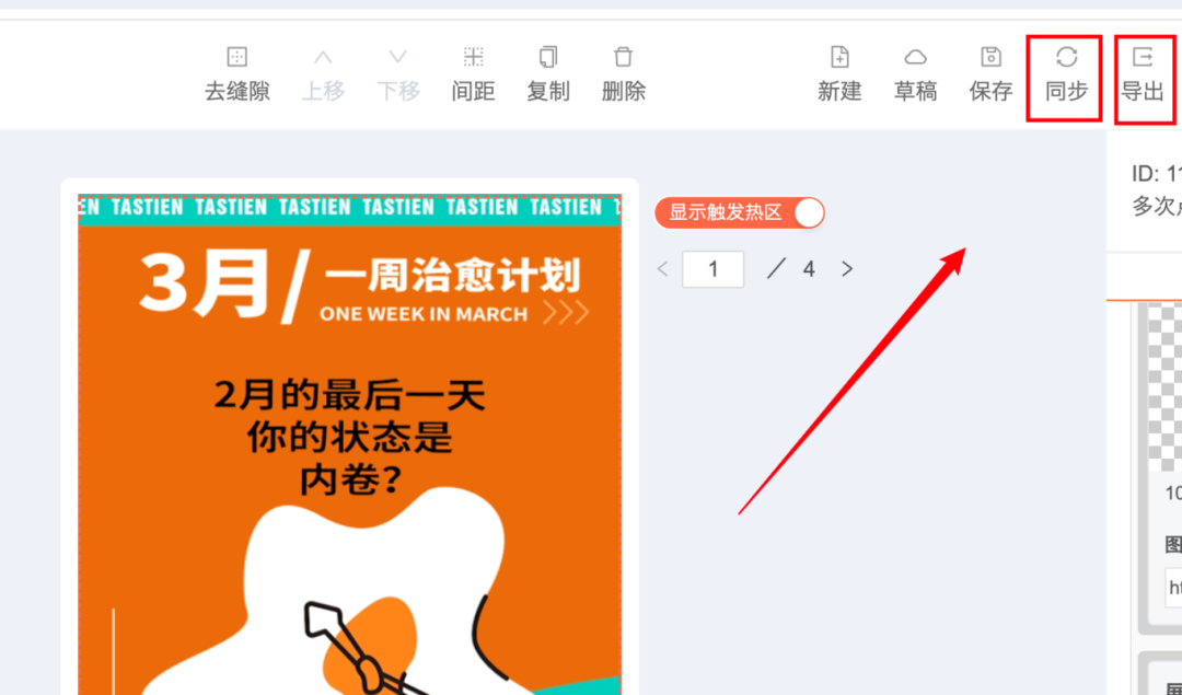 ⑤整個SVG組件的內容制作好之后,選擇右上角的【同步】【導出】就可以導入到公眾號后臺了。