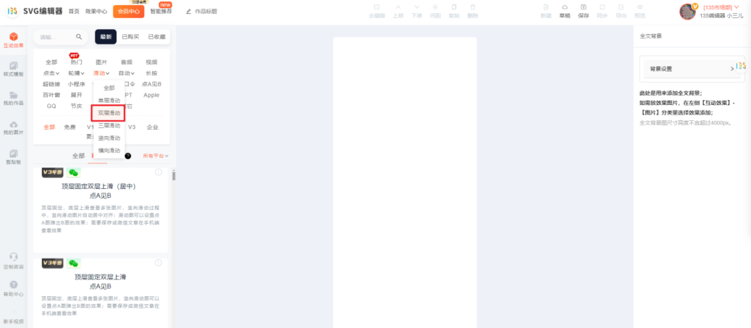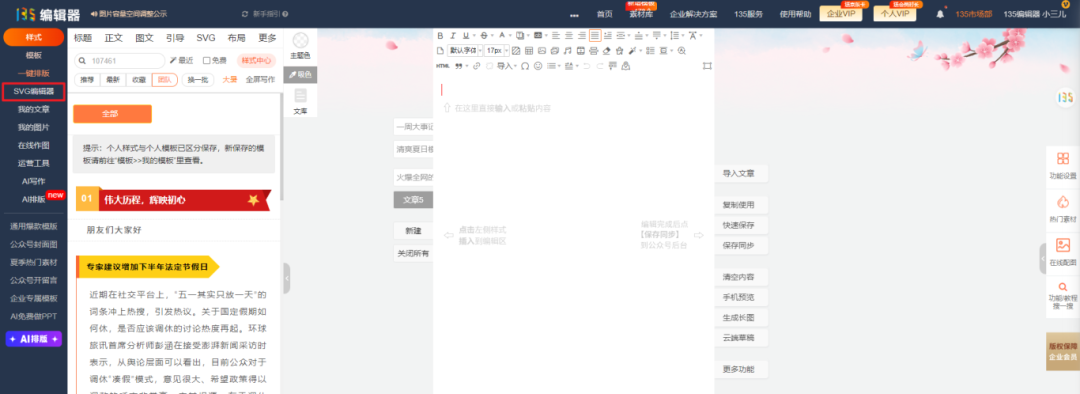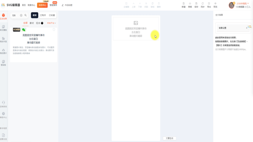 在135編輯器左側(cè),點(diǎn)擊SVG編輯器,進(jìn)入SVG編輯器頁(yè)面。