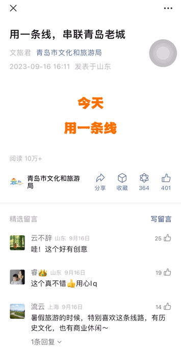 在眾多旅游行業(yè)公眾號(hào)之中,三兒選出了青島市文化和旅游局公眾號(hào)作為優(yōu)秀案例與大家進(jìn)行分享。