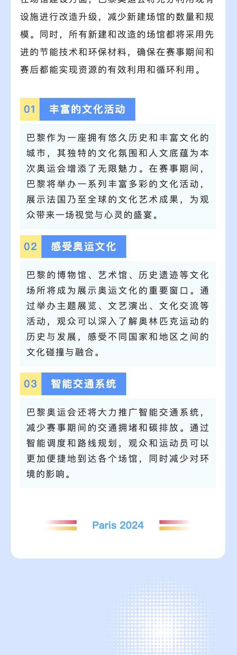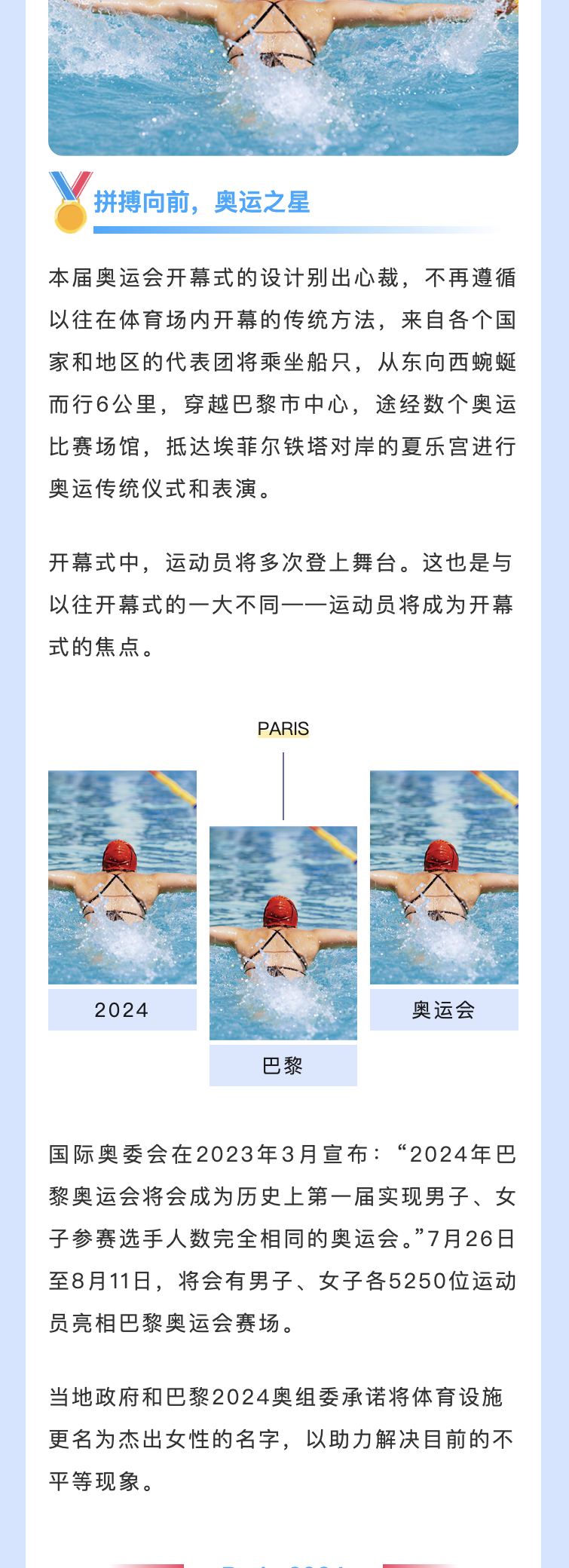 2024年,巴黎將再次成為全球體育愛好者的焦點。這將是奧運歷史上的一次盛會,法國首都以其獨特的魅力和深厚的體育傳統(tǒng),準備迎接來自世界各地的運動員和觀眾。