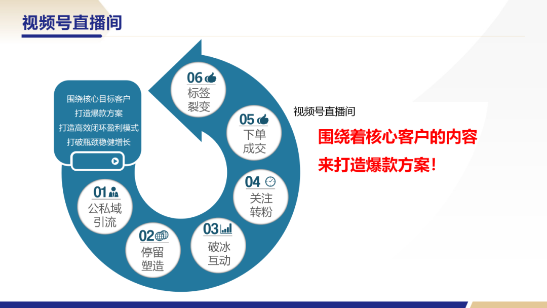 同時呢,基于這個路徑,我們也可以意識到,就是我們的是視頻號直播,如果說你想要長久的做下去,那么我們在做直播間的時候,一定是通過做核心客戶的內(nèi)容,從而來打造我們的直播爆款方案的。因為如果你引流來的都不是精準用戶,那你后面的路徑想要保證轉(zhuǎn)化率是非常非常困難的,畢竟都不是你的目標用戶,對你的內(nèi)容肯定沒有精準客戶那樣感興趣的。