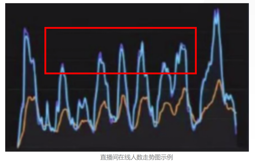 對于一個健康的直播間來說,這樣的數(shù)據(jù)走勢圖是比較正常的。那在這里,我們仔細去觀察,會發(fā)現(xiàn),一場直播下來可能會出現(xiàn)多個流量峰值!