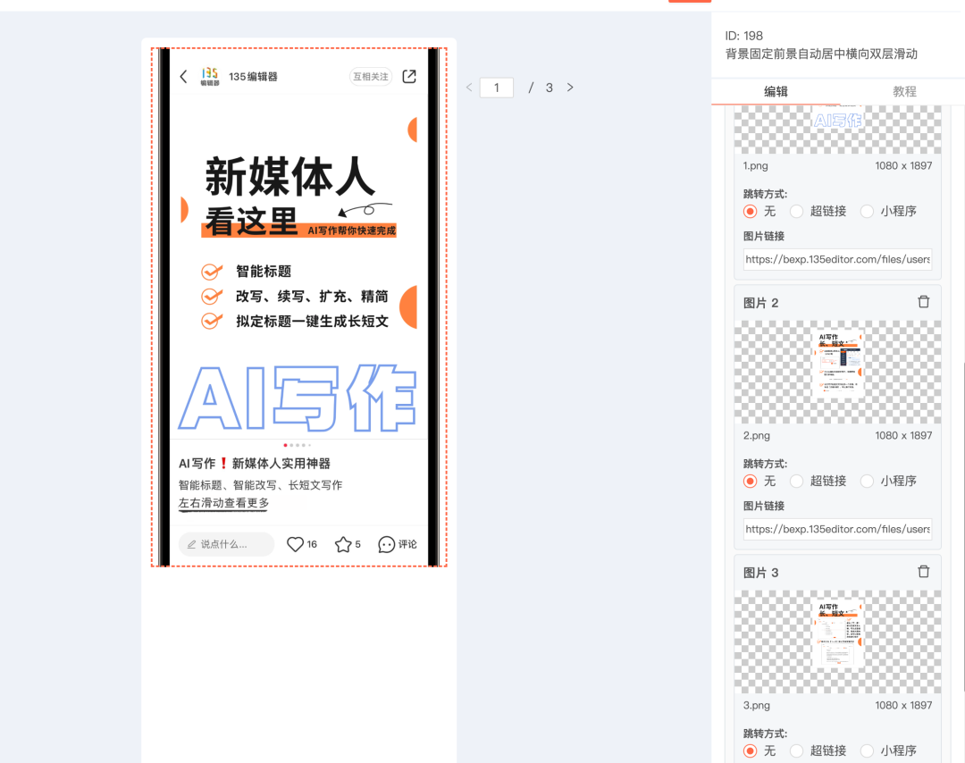 135編輯器,是一款一站式新媒體運營工具,幫助解決排版美化、作圖、運營等一系列問題。平臺已有超1200萬用戶使用,擁有超過15萬+樣式素材、3000+款模板素材、400+款svg互動效果素材,更有秒刷、一鍵排版、多公眾號管理、云端草稿等46項在線功能。