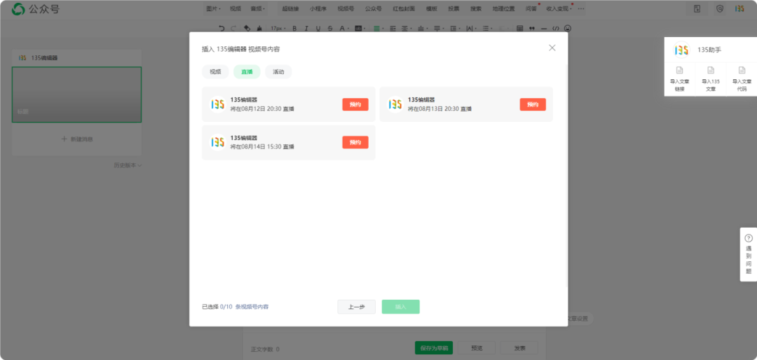 *注意:一篇推文中最多可添加10個直播預(yù)約卡片