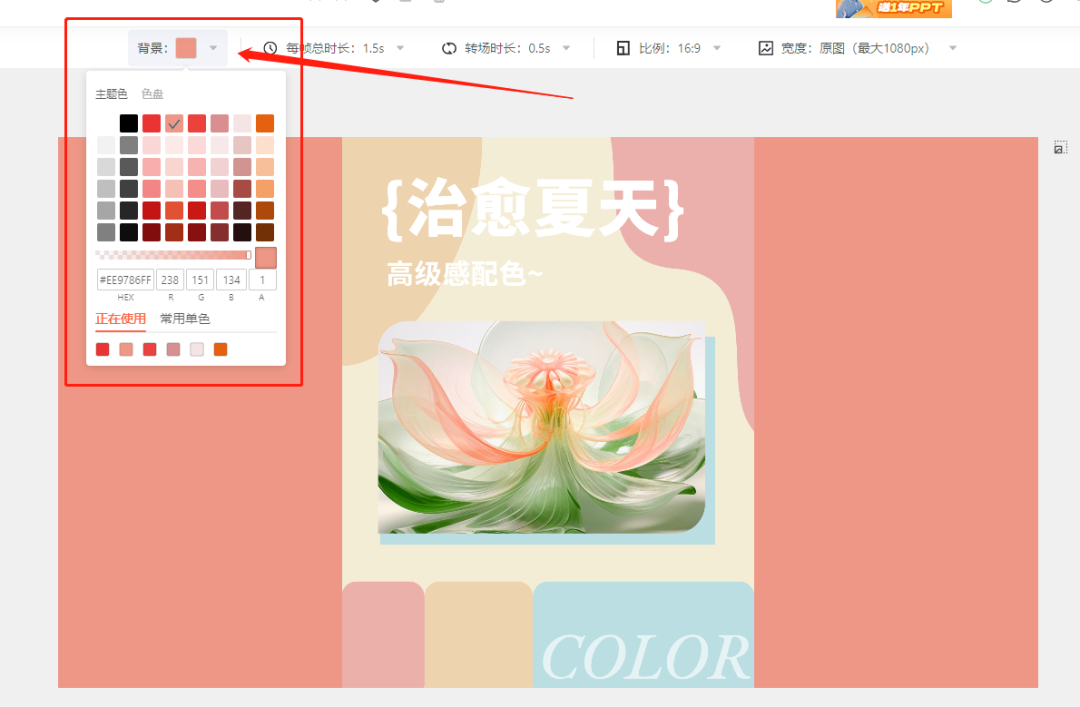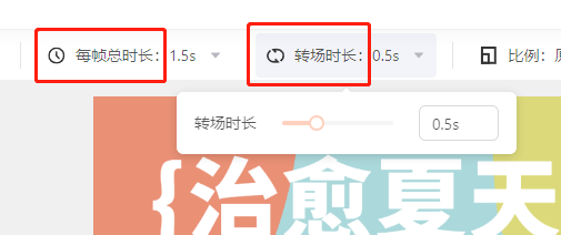 轉(zhuǎn)場(chǎng)時(shí)長(zhǎng):是指動(dòng)效停留的時(shí)間,數(shù)值越大,停留的時(shí)間越長(zhǎng),數(shù)值越小,停留的時(shí)間越短。