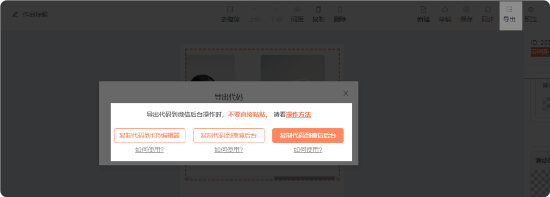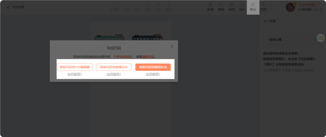 完成后,我們選擇「導(dǎo)出」,可以復(fù)制到135編輯器或者是微信公眾號(hào)后臺(tái)。