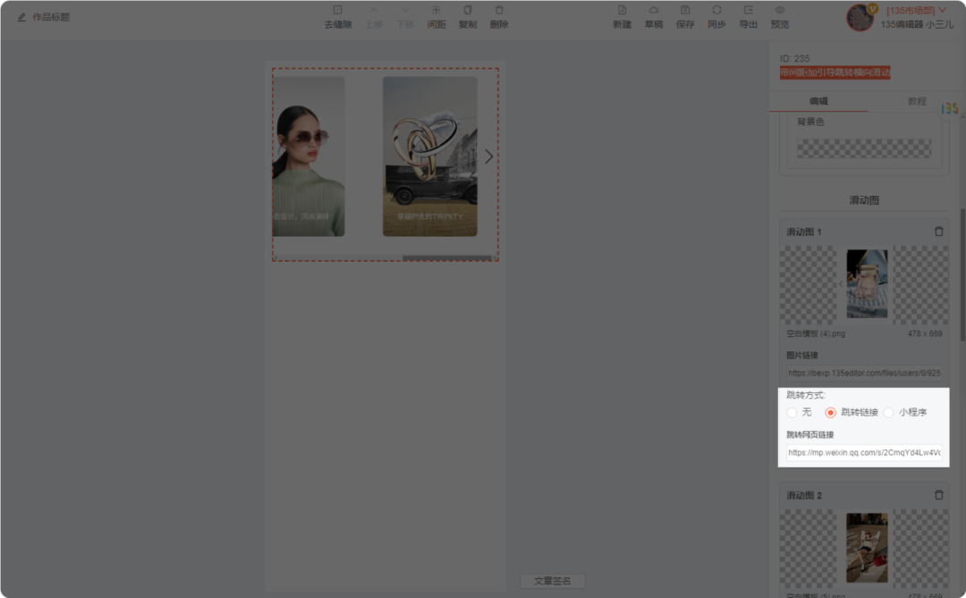 點(diǎn)擊組件添加到編輯區(qū)域中,按需添加滑動(dòng)圖。