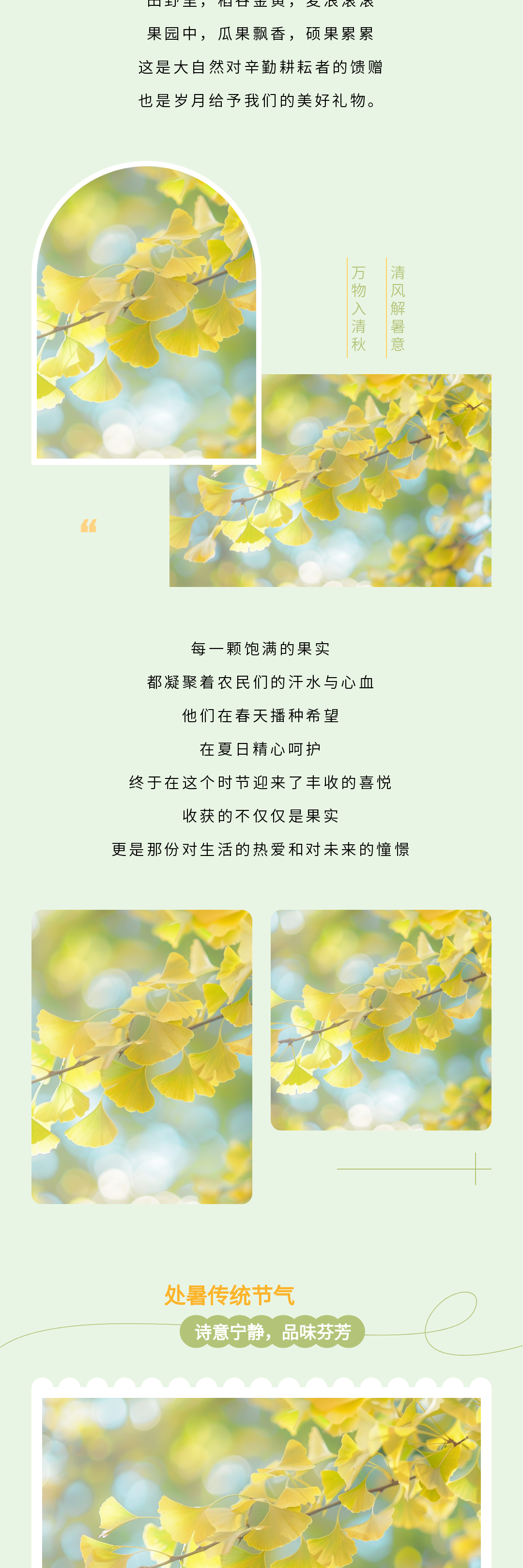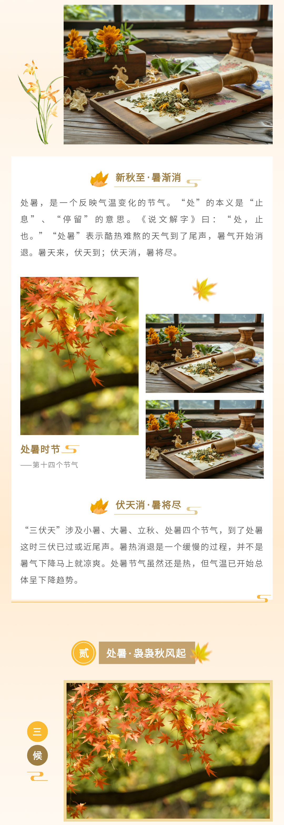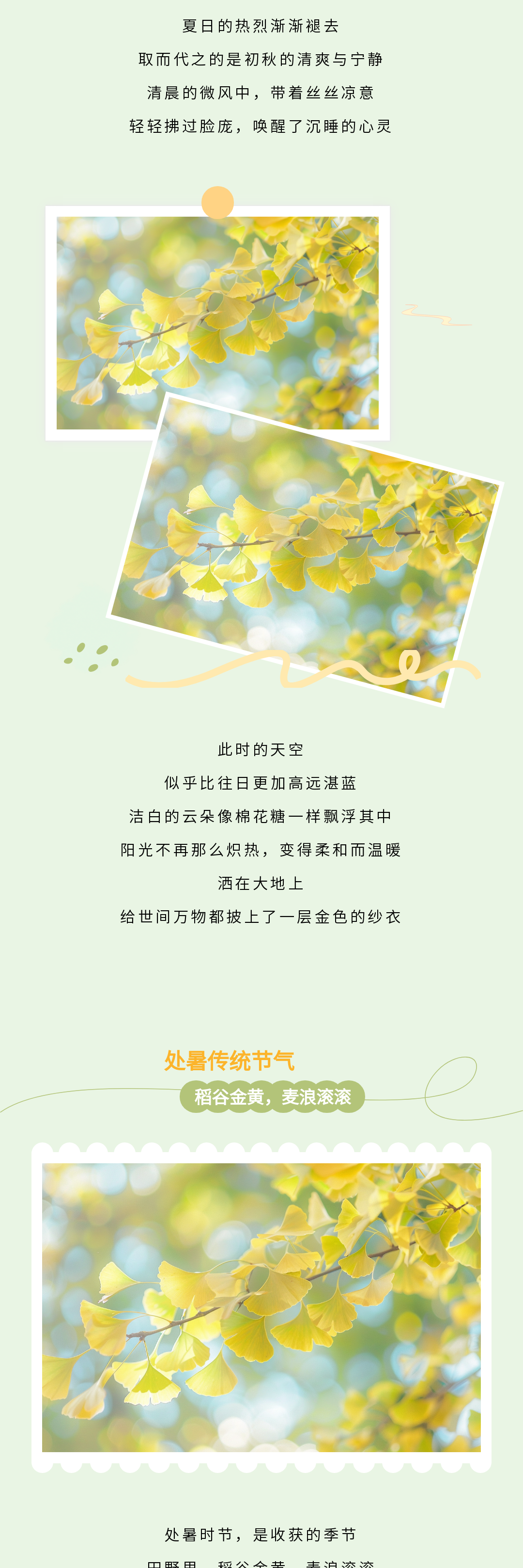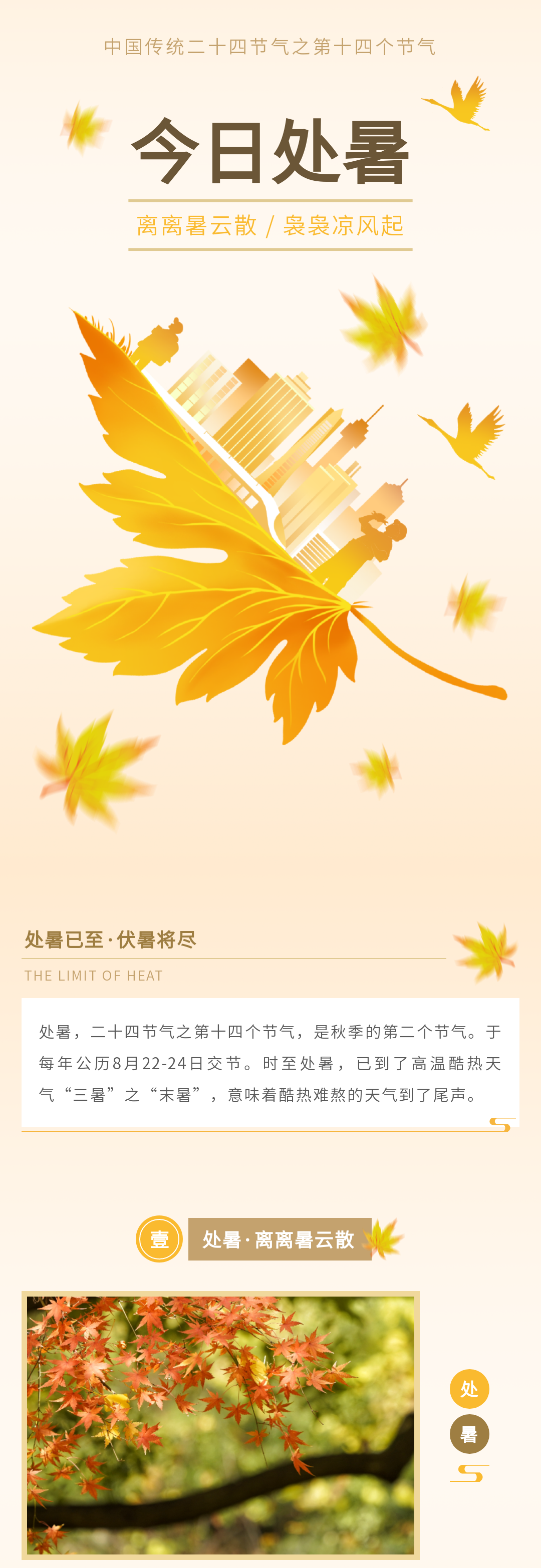 迎接處暑,為你的公眾號注入秋日氣息!《處暑節(jié)氣公眾號模板集錦》精選多款專為秋季設(shè)計的公眾號模板,讓你的內(nèi)容布局更加豐富多彩。無論是秋風漸起的動態(tài)效果,還是秋意盎然的圖文排版,這里都有適合你的創(chuàng)意模板。輕松編輯,快速應用,讓你的公眾號在處暑節(jié)氣煥發(fā)新意,吸引更多關(guān)注。立即體驗,讓你的公眾號與秋風共舞,傳遞秋日的溫馨與美好!
