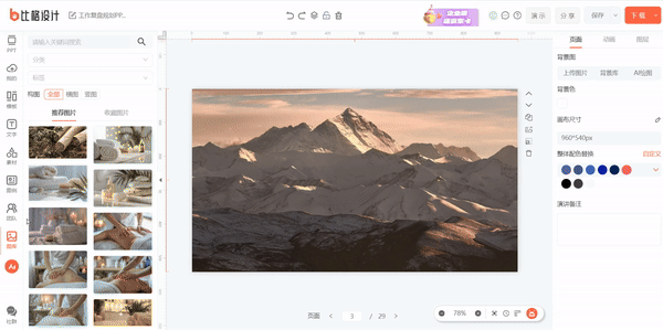 首先,在筆格PPT的圖庫中選擇一張高質(zhì)量、與主題相關(guān)的圖片作為背景。