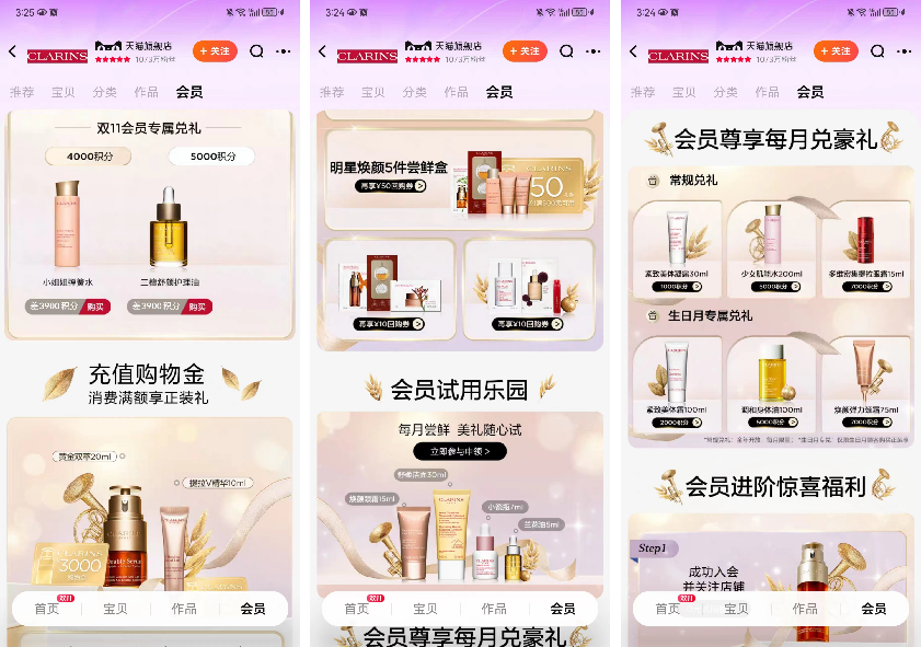 每消費1元可獲得1.5積分,積分可用于常規(guī)兌禮、生日月專屬兌禮。此外,會員還可以申領免費試用指定款產(chǎn)品。