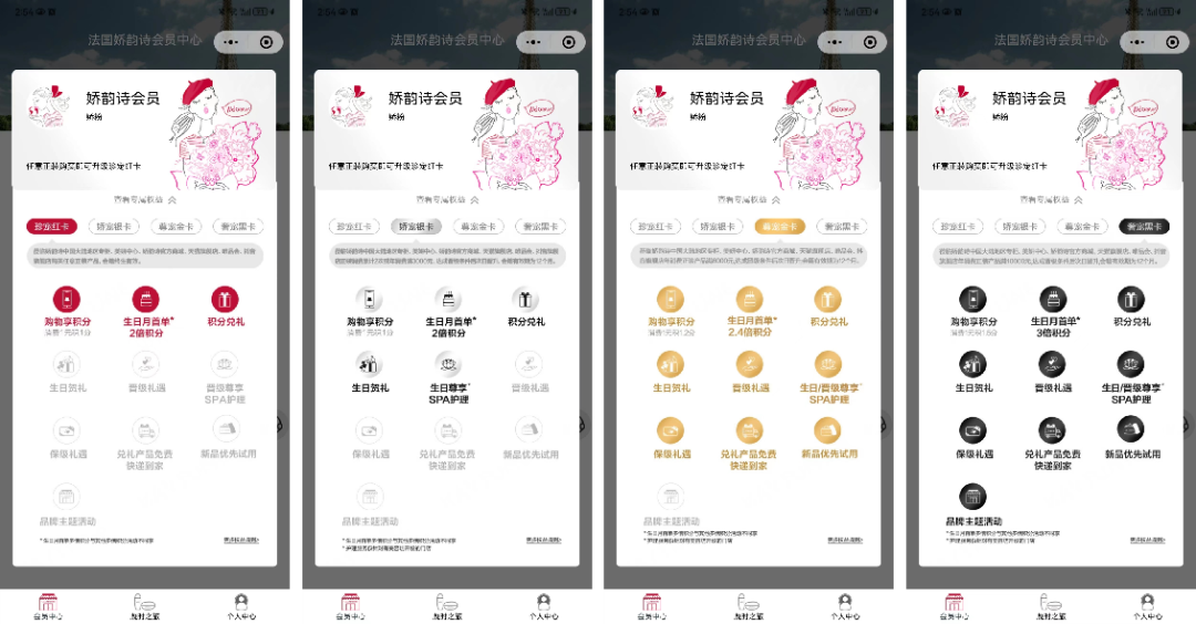 小程序「法國嬌韻詩會員中心」:主要積分紀錄,會員權益;