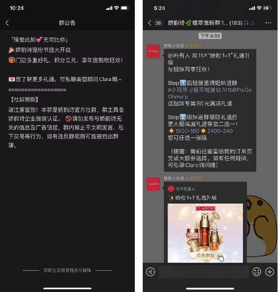 在競爭激烈的護膚品行業(yè)中,來自法國的嬌韻詩靠私域殺出了一條血路,數(shù)據(jù)顯示,嬌韻詩的私域復購率高達200%。