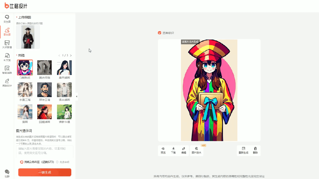 全網(wǎng)都在刷屏的AI生成Q版貼紙圖片在筆格AI的圖生圖功能里登場啦!真人秒變萌系紙片人大叔變正太?御姐變萌妹?反差感狠狠拿捏!簡直易如反掌!只需一次點擊,就能萌翻全場!