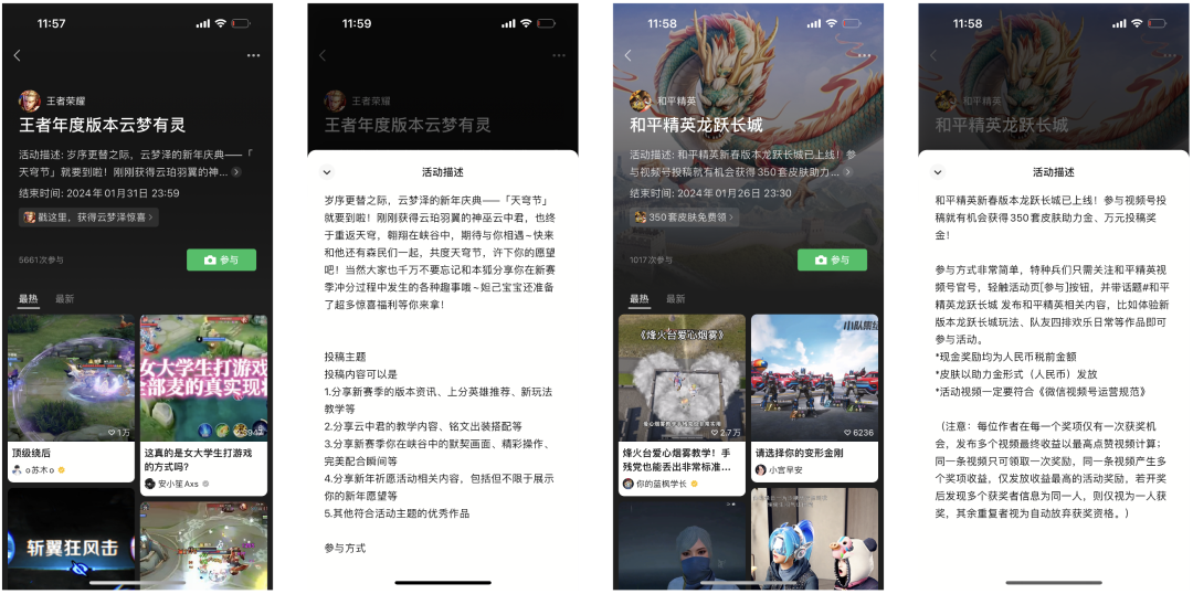 除游戲直播外卷入更多玩家外,視頻號在短視頻內(nèi)容上也持續(xù)通過話題活動引導(dǎo)玩家參與內(nèi)容的制作。