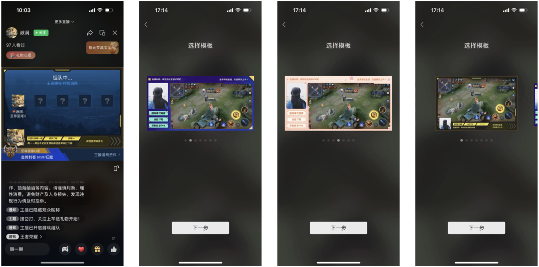 以《王者榮耀》為例,它既是騰訊游戲的當家花旦,也是目前視頻號直播中玩法開發(fā)最為豐富的游戲。其中的特色玩法包括「觀眾組隊上車」、「游戲智能解說」、「畫面貼圖」、「段位展示」、「導(dǎo)播視角」等。