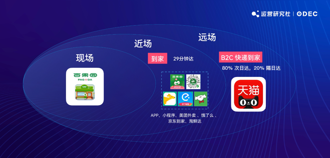 對于立馬想吃到水果就可以選擇及時(shí)能取到商品但價(jià)格會稍微貴一些的中場、近場渠道,比如到線下門店或者在餓了么、小程序云店上下單。