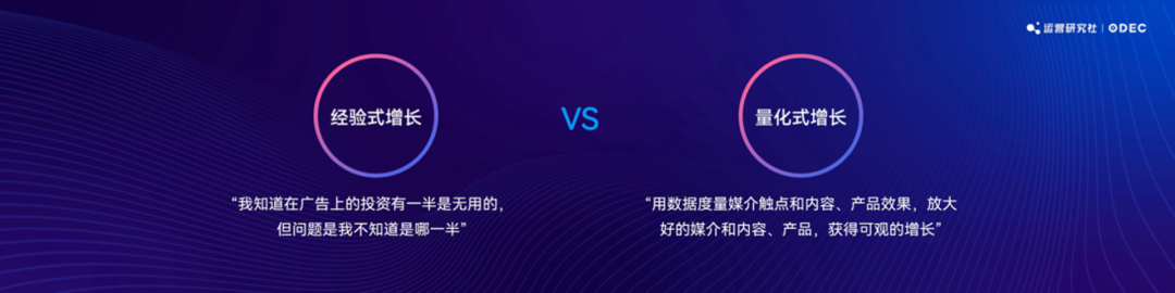 過去品牌所做的是經(jīng)驗(yàn)式的增長,比較經(jīng)典的現(xiàn)象是「我知道在廣告上的投資有一半是無用的,但問題是我不知道是哪一半」。現(xiàn)在則是用數(shù)據(jù)清清楚楚地知道哪些媒介觸點(diǎn)和內(nèi)容帶來了最大的收益,選擇效果好的媒介觸點(diǎn)和內(nèi)容持續(xù)放大,最終獲得可觀的增長,我把這個(gè)過程叫「量化式增長」。