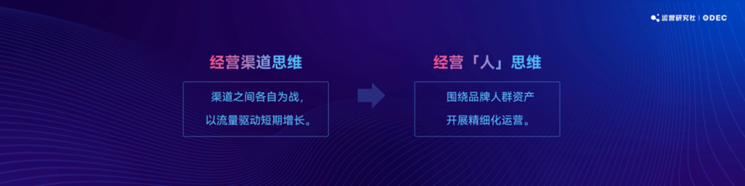 這些問題根源在于,品牌過去是以渠道為核心,渠道之間各自為戰(zhàn),以流量驅(qū)動(dòng)短期增長。隨著互聯(lián)網(wǎng)平臺和品牌經(jīng)營方式的多元化,消費(fèi)者的決策方式變得更加復(fù)雜,長期來看品牌增長需要從經(jīng)營渠思維,轉(zhuǎn)變?yōu)榻?jīng)營人,圍繞品牌人群資產(chǎn)開展精細(xì)化運(yùn)營。