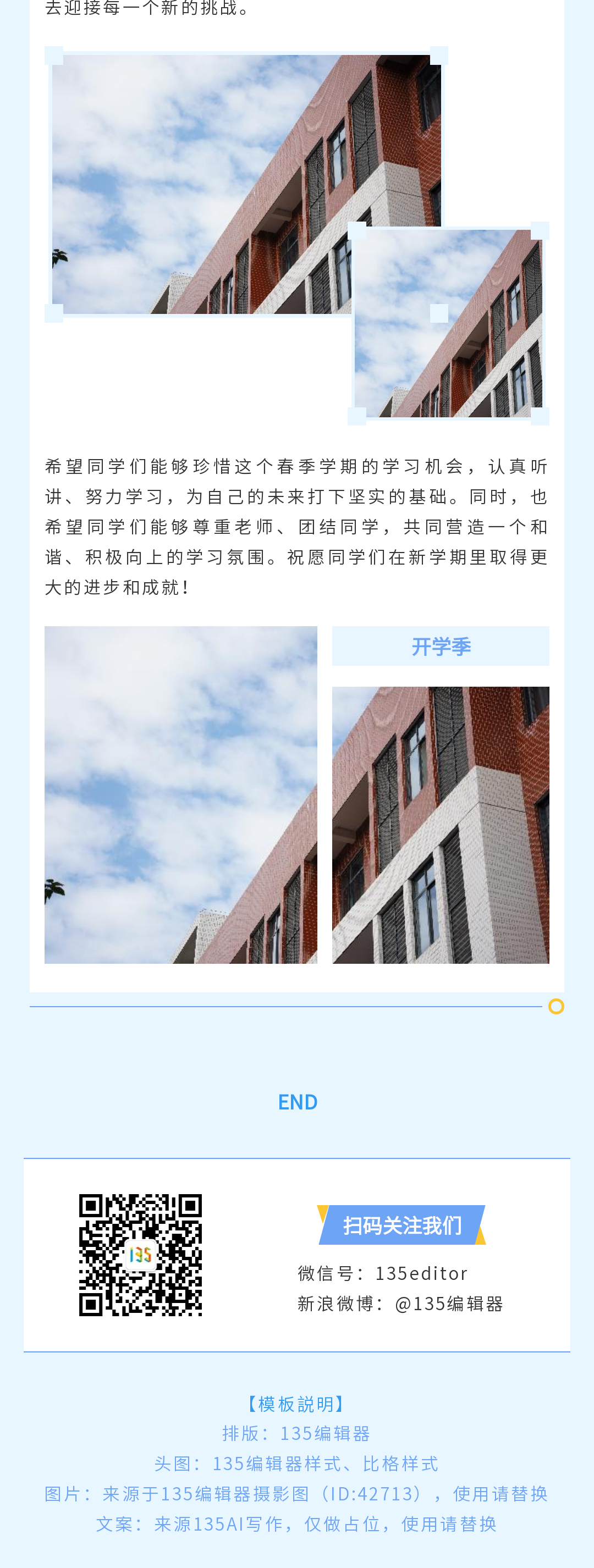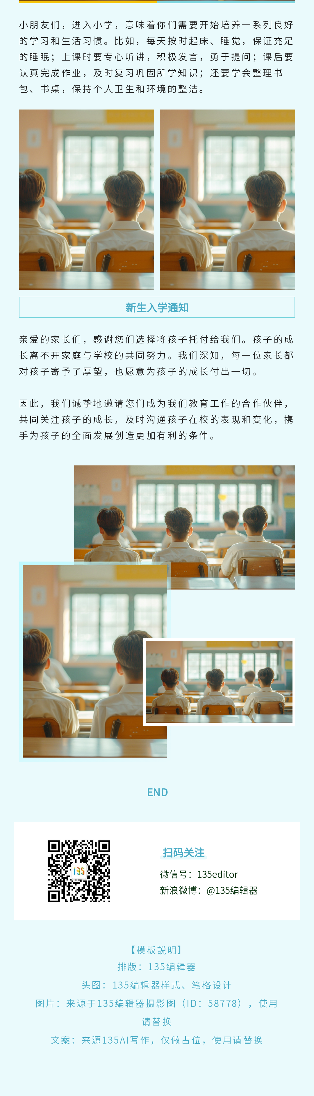 迎接新學(xué)期,獲取新生報(bào)到的全面注意事項(xiàng)和激發(fā)創(chuàng)意的開(kāi)學(xué)季公眾號(hào)模板。從情感共鳴到視覺(jué)吸引,我們提供一站式解決方案,讓你的公眾號(hào)內(nèi)容在開(kāi)學(xué)季脫穎而出。立即探索我們的模板庫(kù),讓你的公眾號(hào)文章更具吸引力和專業(yè)性。