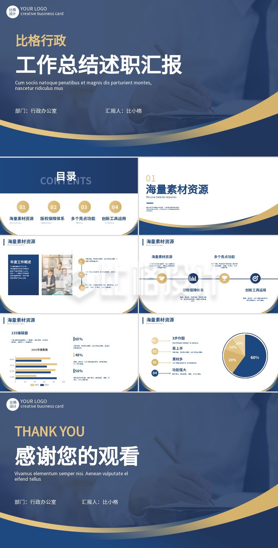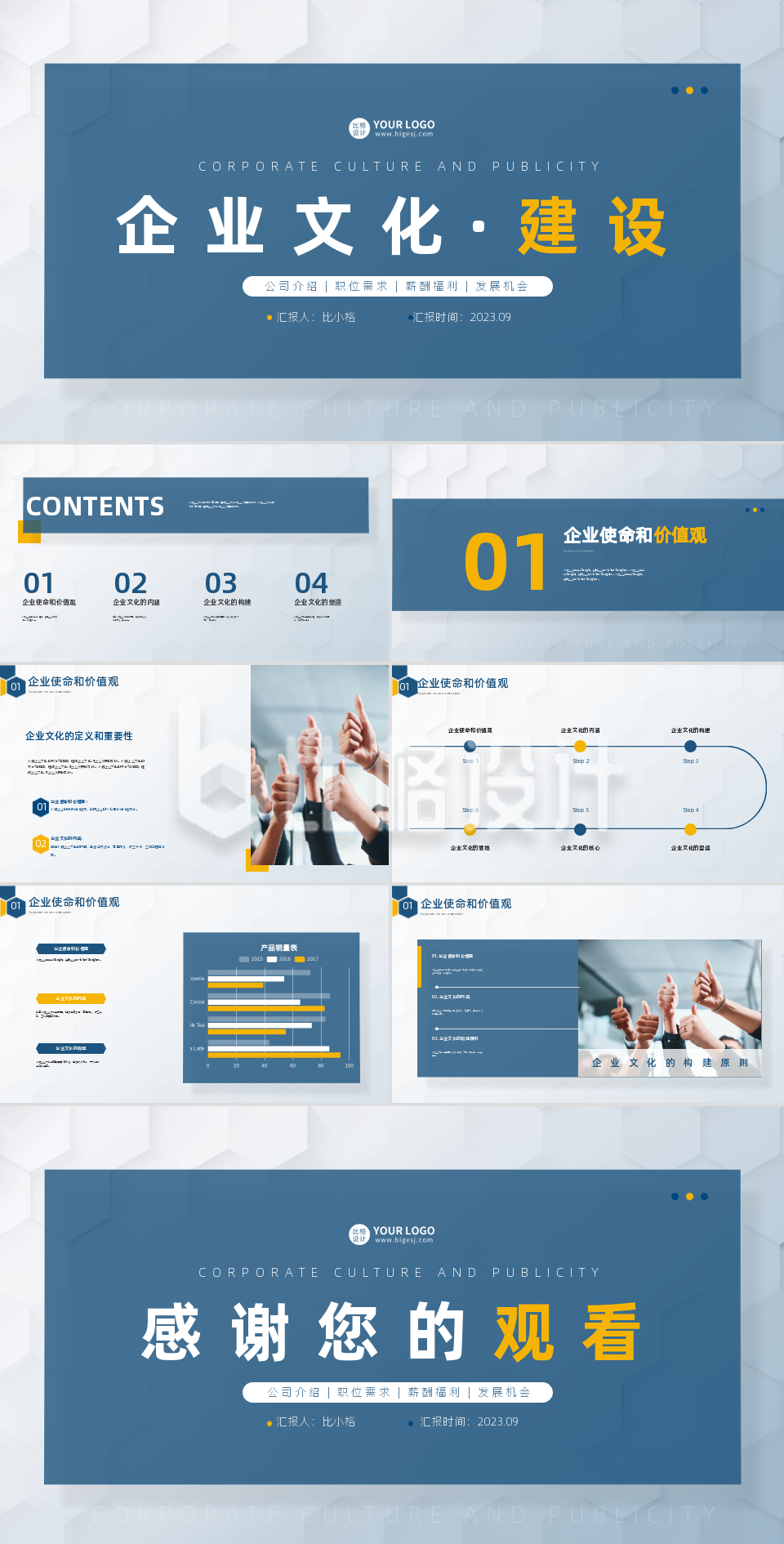 比如,當您展示工作匯報時,以深藍色為主導,搭配少量的橙黃色線條和圖表,能凸顯出方案的嚴謹與可行性。