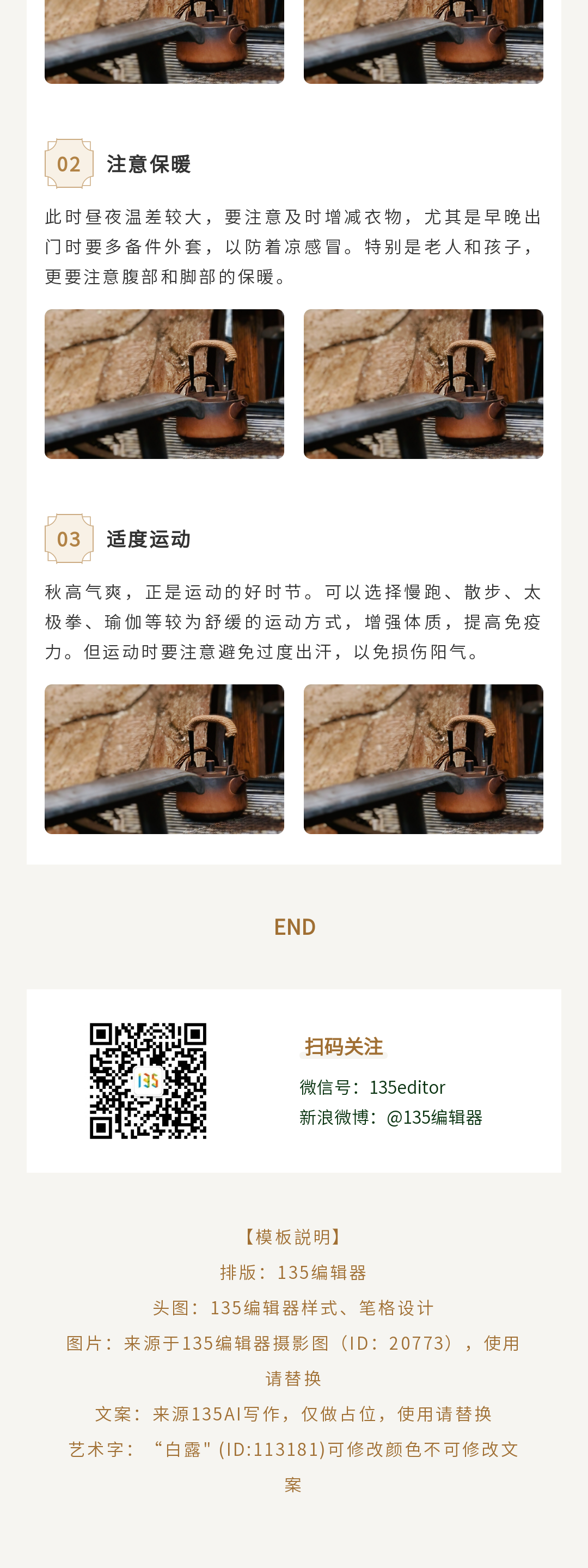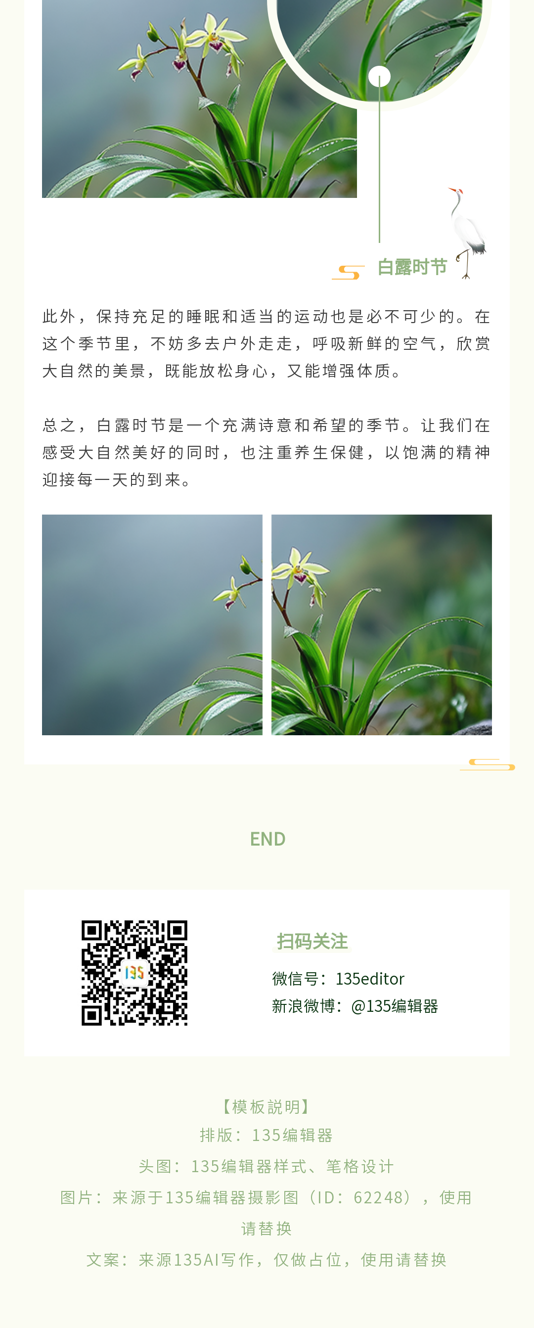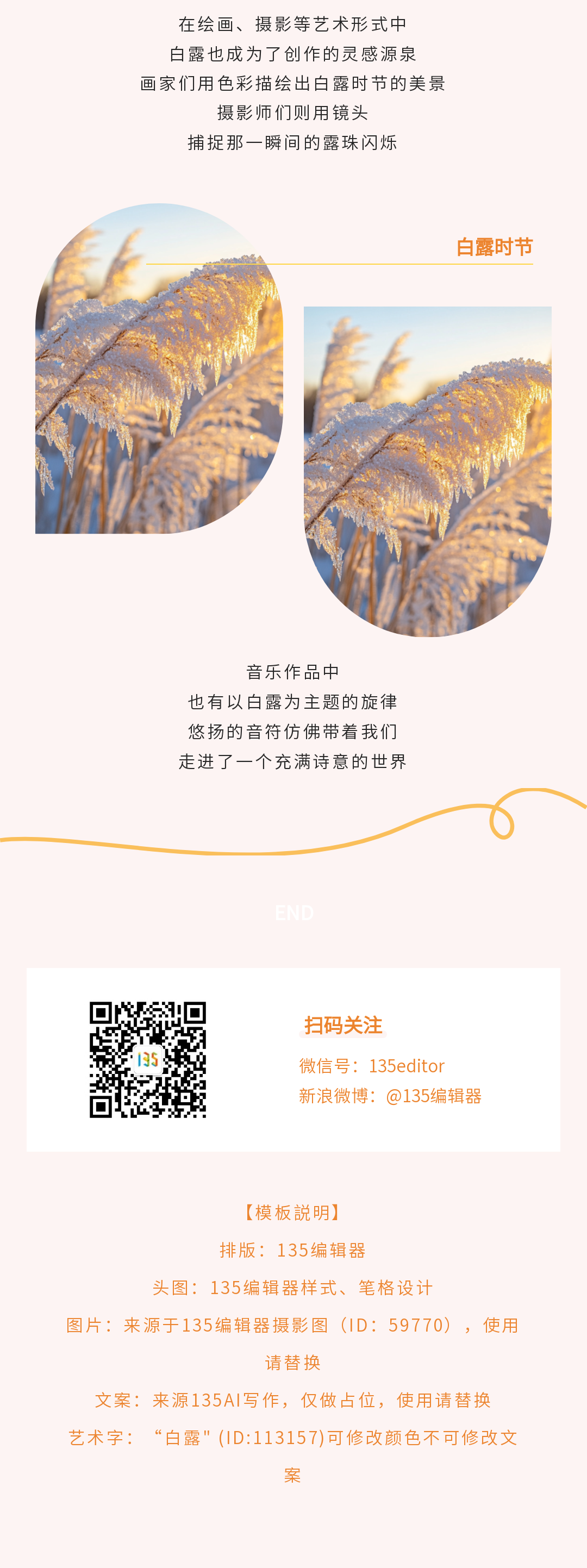 探索傳統(tǒng)節(jié)氣之美,"白露公眾號(hào)模板"帶來(lái)獨(dú)特的中國(guó)風(fēng)設(shè)計(jì)。精選白露公眾號(hào)模板,為您的新媒體運(yùn)營(yíng)增添古典韻味。立即體驗(yàn)135編輯器,讓每個(gè)節(jié)氣都充滿(mǎn)詩(shī)意。
