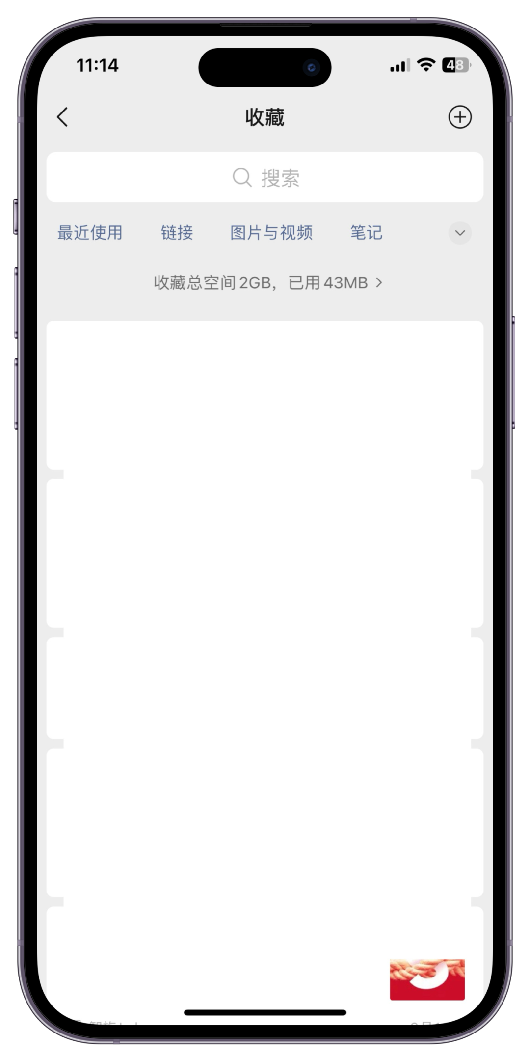 從沒(méi)想到「收藏」還有存儲(chǔ)空間的限制,在新版本中下拉「收藏」頁(yè)面,就能看到收藏空間的顯示。