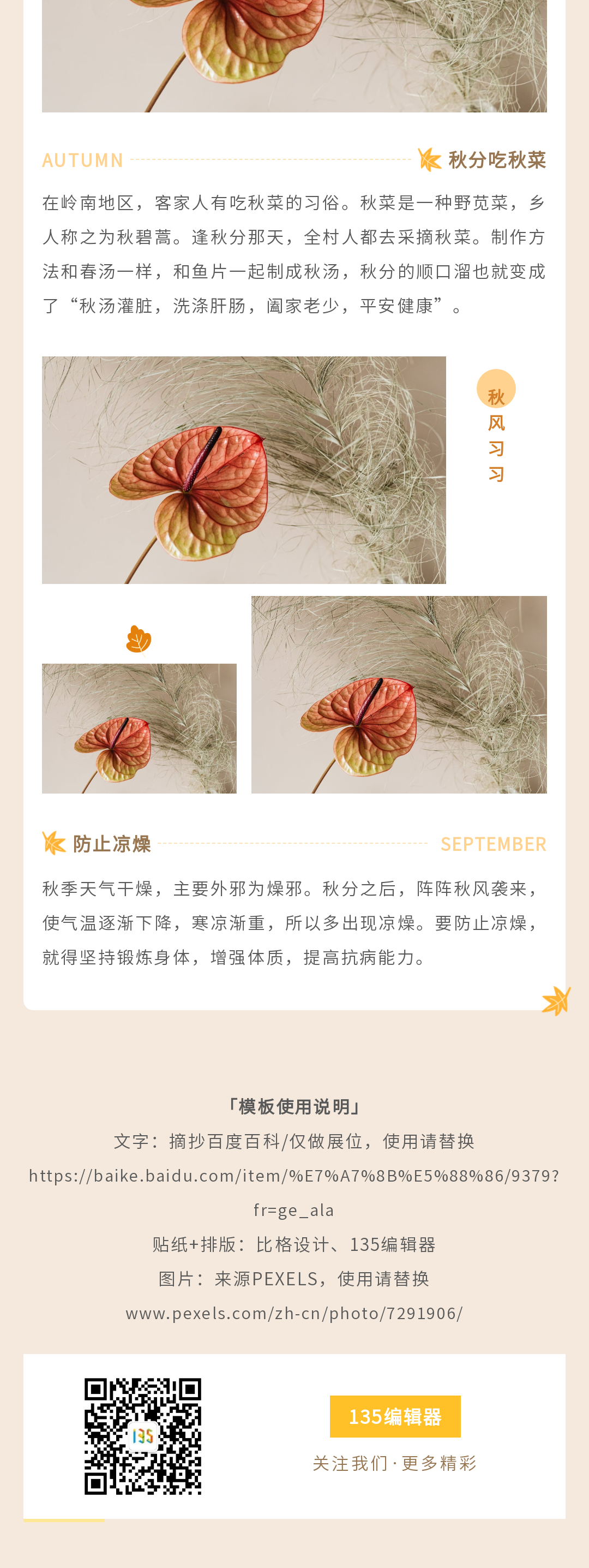 迎接秋分,為您的公眾號(hào)帶來季節(jié)性的轉(zhuǎn)變。135編輯器提供一系列專為秋分設(shè)計(jì)的公眾號(hào)模板,讓您的內(nèi)容營銷與自然節(jié)律同步。這些模板不僅美觀,而且易于使用,幫助您快速創(chuàng)建與秋分主題相匹配的圖文內(nèi)容。