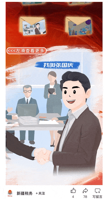 政務(wù)行業(yè)怎樣做出高級且有創(chuàng)意的國慶主題推文呢?不妨來看看新疆稅務(wù)給出的答案。文章以“我和祖國的故事”作為創(chuàng)意思路,講述了四類不同身份的人:軍人、科研人員、創(chuàng)業(yè)者等,他們與祖國之間的點滴故事,這些故事不僅深刻展現(xiàn)了個人與國家的緊密聯(lián)系,還巧妙地宣傳了便民利民的稅務(wù)政策,通過這種展現(xiàn)形式,既與國慶主題相契合,又讓原本看似枯燥的政策內(nèi)容以一種更加有趣的方式呈現(xiàn)給用戶,便于大家理解。