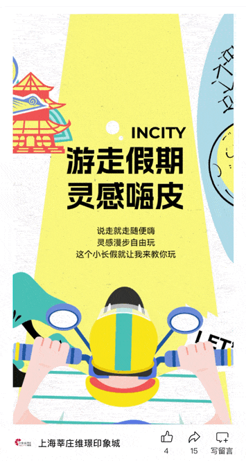 國慶假期是游玩的旺季,對于有些有選擇困難癥的小伙伴來說,去哪里成了他們很糾結(jié)的問題,所以我們在推文中可以利用抽簽的SVG玩法列出一些旅游目的地、出行方式等選項,并在其中可以植入自己品牌的產(chǎn)品,通過引導(dǎo)用戶自行選擇,與他們進行互動。