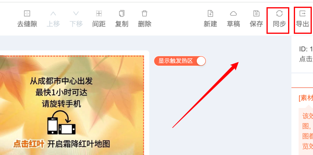組件設(shè)置完成后,點(diǎn)擊右上角的【同步】【導(dǎo)出】,即可導(dǎo)入到公眾號(hào)后臺(tái)。