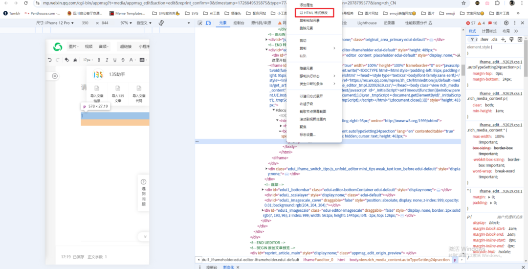 右鍵「1」,選擇「以HTML格式修改」如果你是英文界面就選擇「Edit as HTML」