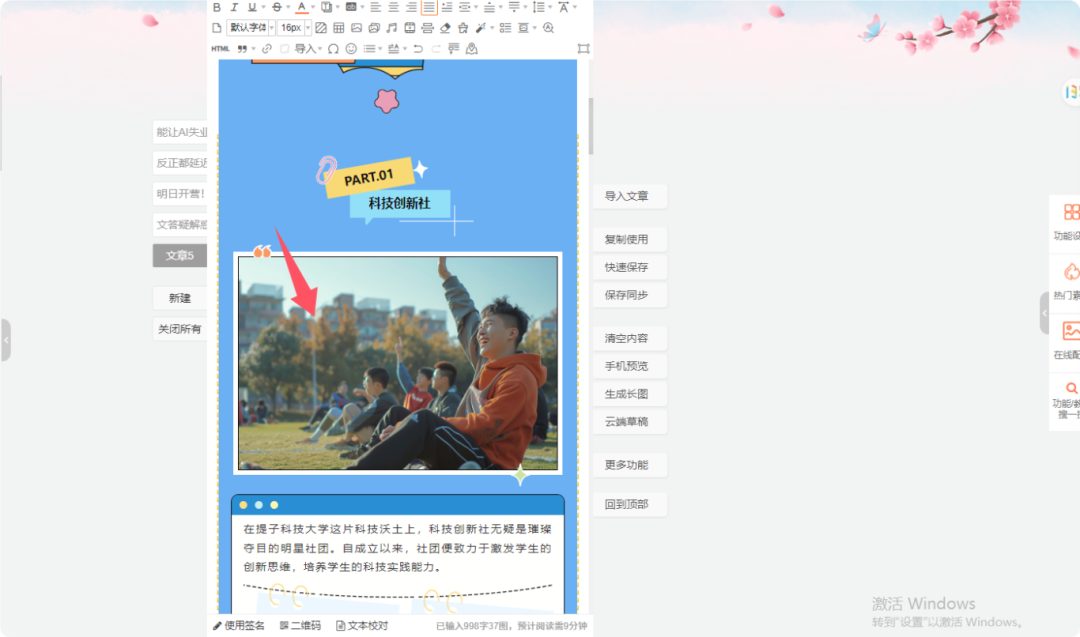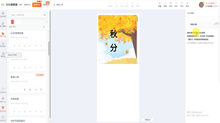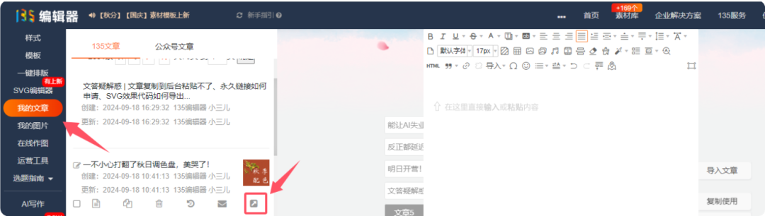 回到135編輯器編輯頁(yè)面中,找到模板中需要添加SVG效果的區(qū)域,譬如我們將下方圖片換成SVG效果。