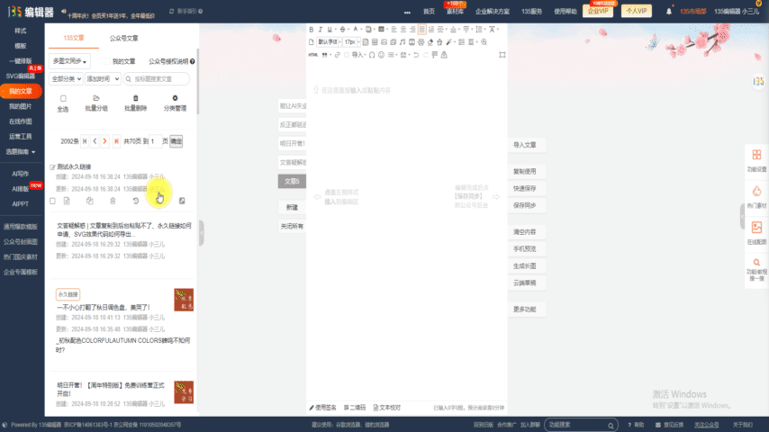 在我們寫完內(nèi)容后,可以在135編輯器左側(cè)「我的文章」中找到剛剛保存的文章,將鼠標(biāo)放置在內(nèi)容區(qū)域上,下方會(huì)出現(xiàn)菜單欄,我們選擇「分享」按鈕。
