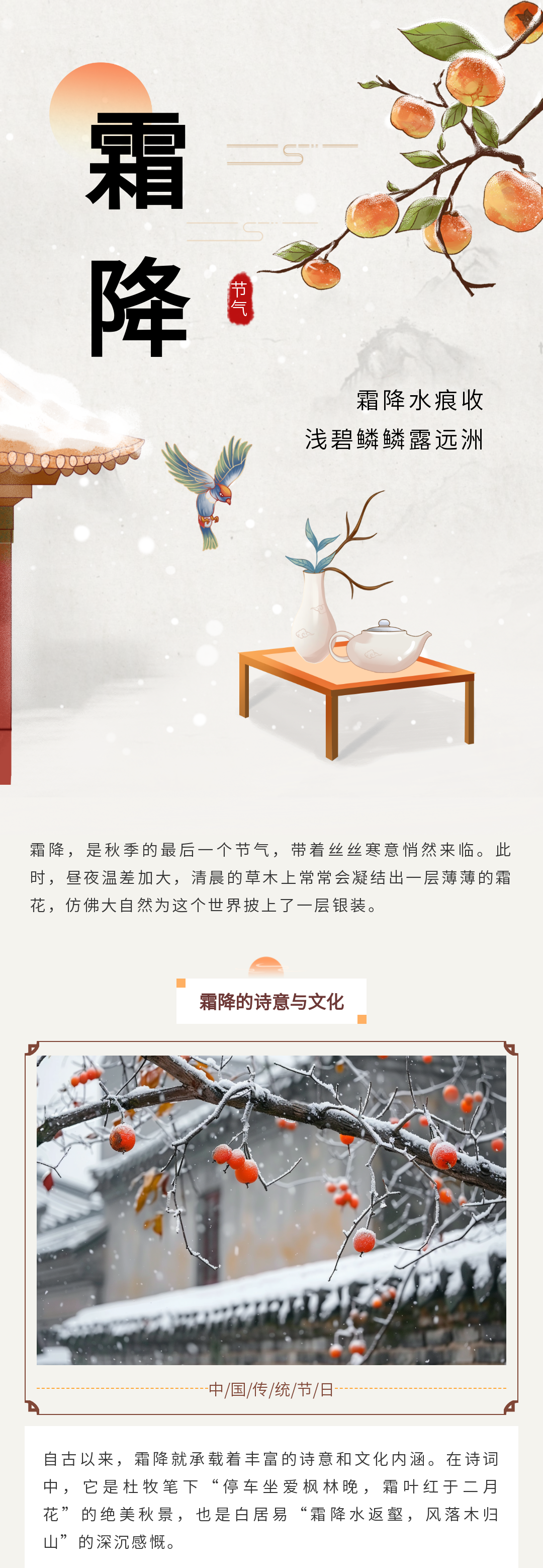 為您的霜降公眾號推文尋找靈感,我們提供了豐富的霜降節(jié)氣模板。從精美的海報到創(chuàng)意文案,每一款設(shè)計都旨在捕捉秋末的寧靜與冬初的期待。利用這些模板,輕松打造您的霜降主題內(nèi)容,讓您的讀者在霜降時節(jié)感受到季節(jié)的變遷與自然之美。立即查看并使用這些霜降模板,讓您的公眾號內(nèi)容更加生動和吸引人。