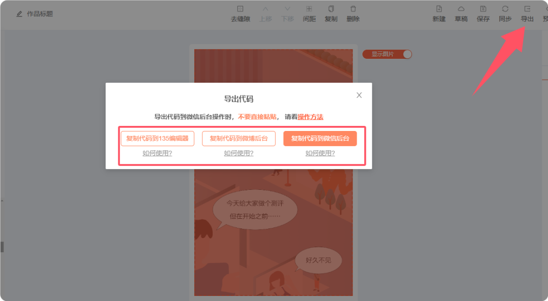 如果你還需要將效果放到135編輯器中,那么可以使用「導(dǎo)出」將效果復(fù)制到135編輯器中。