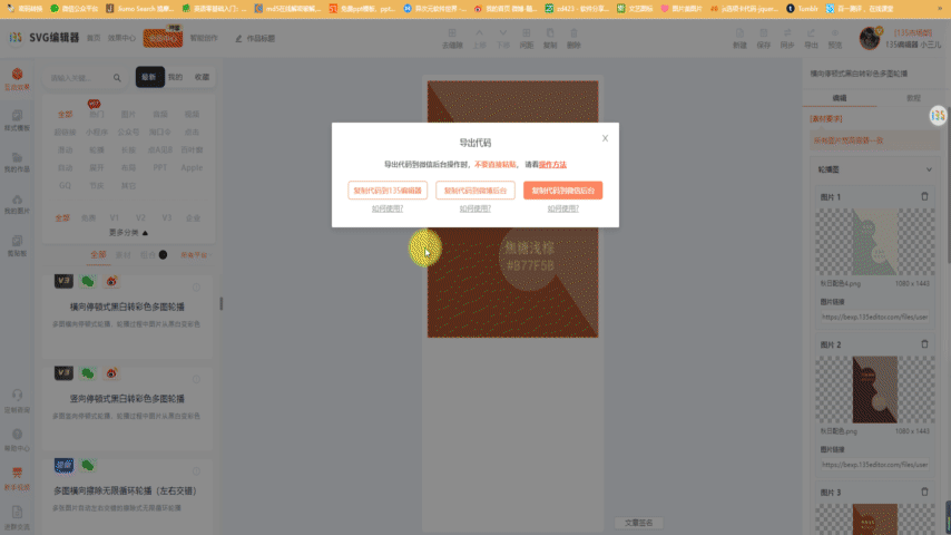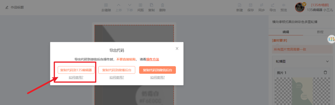 我們在制作好輪播后,選擇[導(dǎo)出]—[復(fù)制到135編輯器]