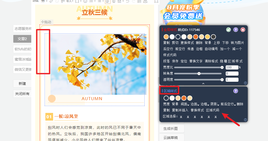 選擇圖片所在區(qū)域,在區(qū)域樣式中找到[區(qū)域代碼]