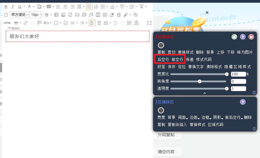 *注意:大家發(fā)現(xiàn)沒有我們粘貼svg效果都需要在區(qū)域樣式中完成,所以大家一定不要將所有內(nèi)容放在一個編輯框中,每完成一個部分就使用[后空行](不是敲回車),或是使用[布局]中的[基礎(chǔ)布局]
