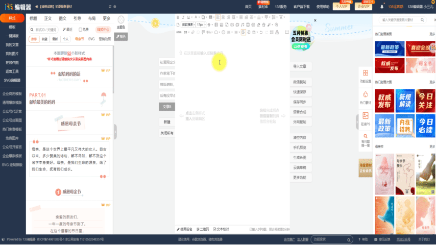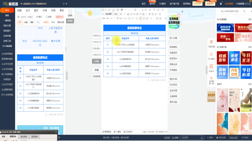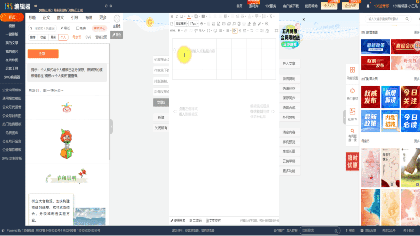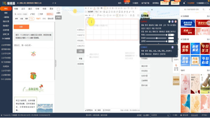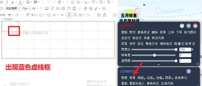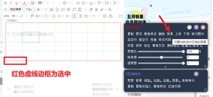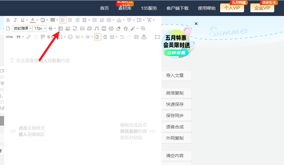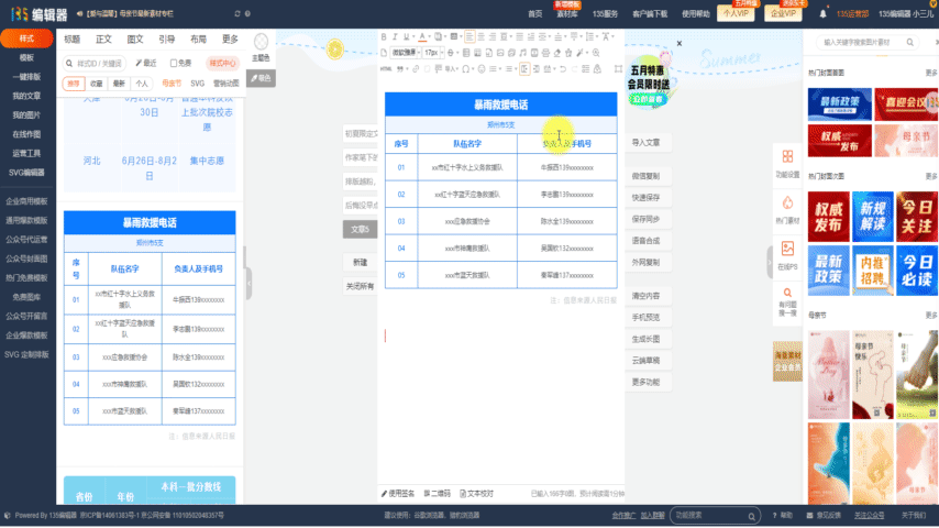 如果我們想要自定義插入表格,就需要在135編輯器區(qū)上方,找到表格按鈕,滑動鼠標(biāo)選取自己想要的表格大小,點擊即可插入。