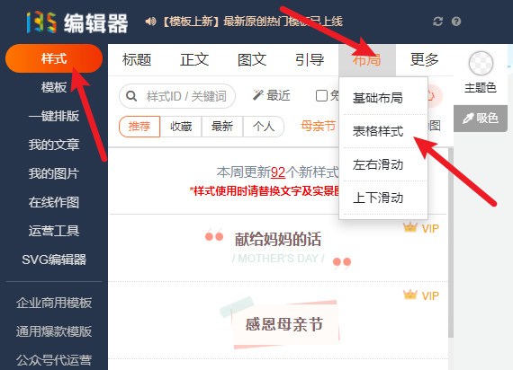 在編輯器左側(cè)找到[樣式]——[布局]——[表格樣式]