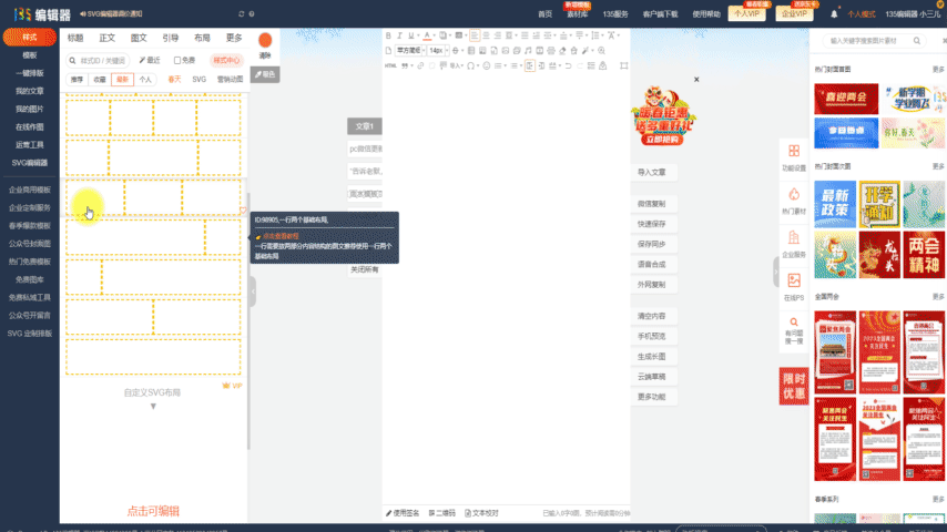 1.進(jìn)入svg編輯器,在編輯器左側(cè)找到【svg編輯器】點(diǎn)擊進(jìn)入