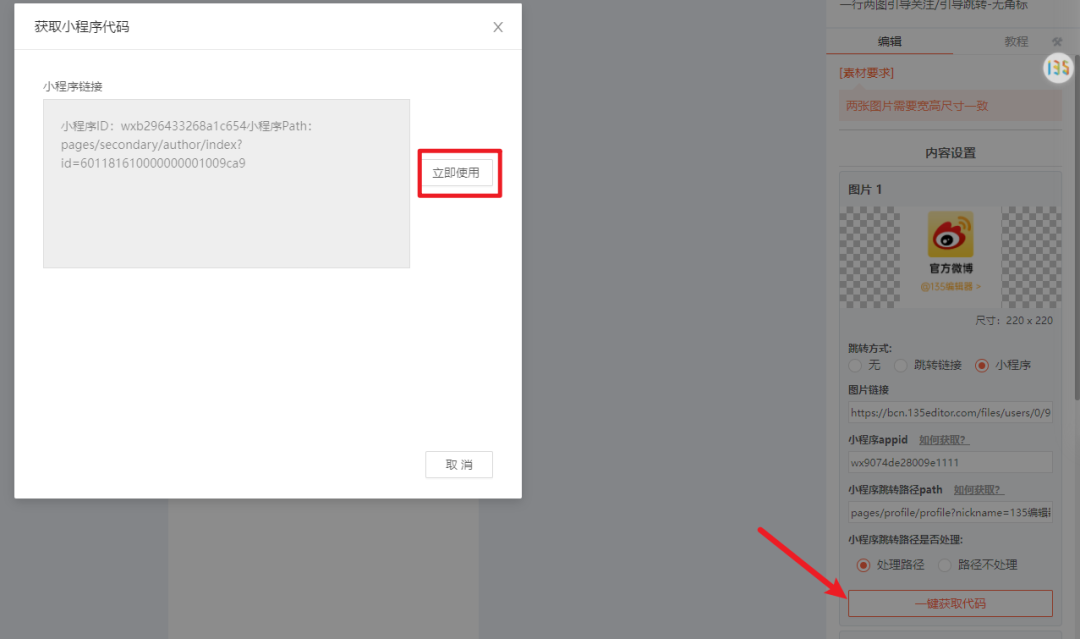 #選擇一篇帶有【小程序】的文章鏈接,選擇一鍵獲取代碼。
