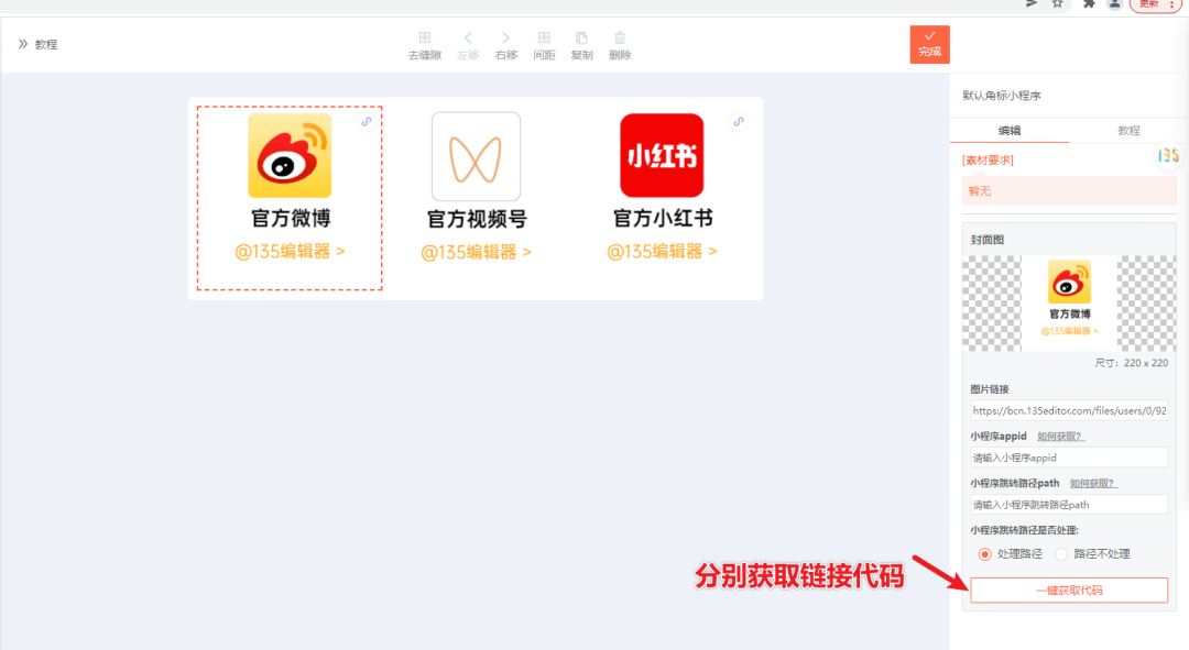 #這里我們選擇一行三列布局,分別插入微博、視頻號(hào)、小紅書。