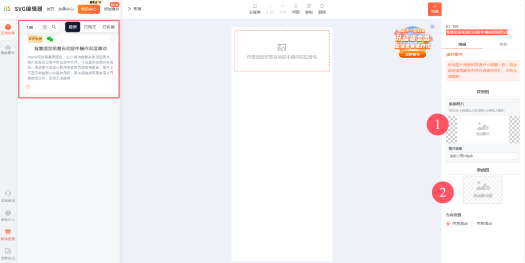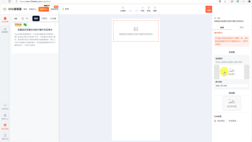 點(diǎn)擊組件進(jìn)入SVG編輯器中,這個時候我們需要看清楚素材要求。