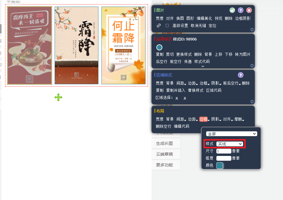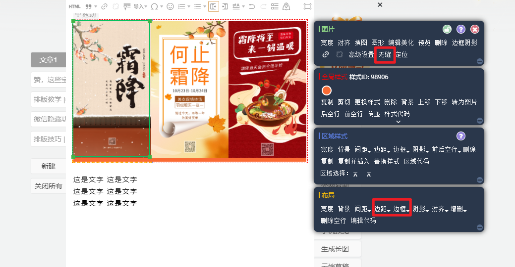 *注:格式設(shè)置方式與【布局+圖片】相同,都需要注意清楚去除圖片縫隙,以及設(shè)置圖片邊框、邊距