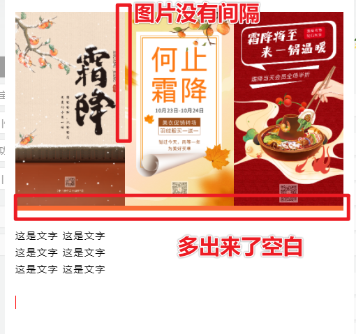 大家看到了吧,放置圖片后邊框內(nèi)還有多余的空白,圖片與圖片之間緊密相連不夠好看。