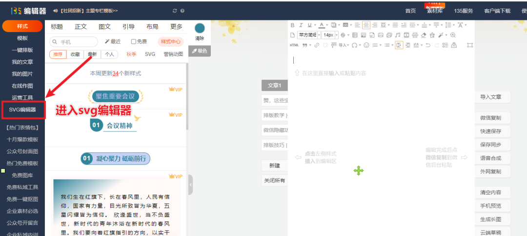 正確操作是微信公眾號授權(quán)給135編輯器后,使用【保存同步】到微信后臺,這樣可以確保svg效果完美呈現(xiàn)。