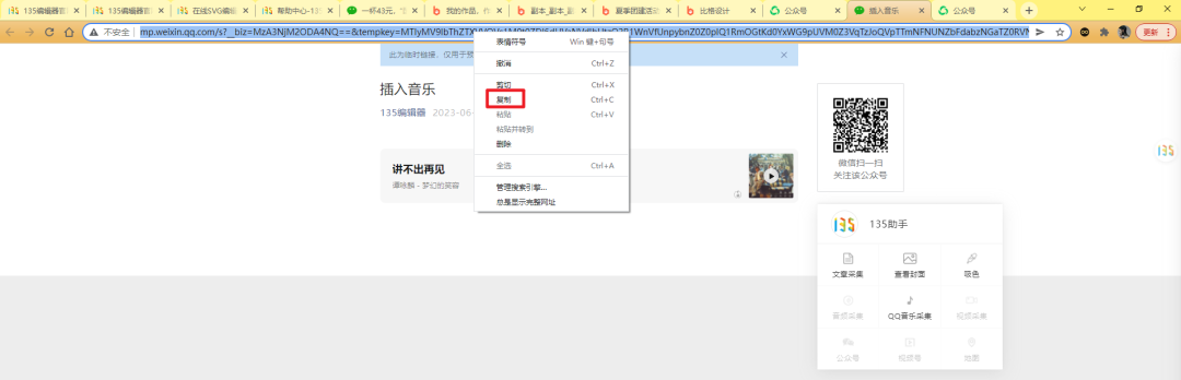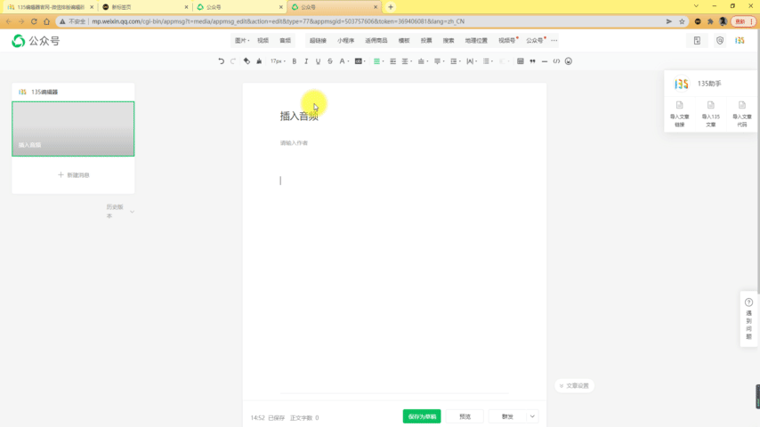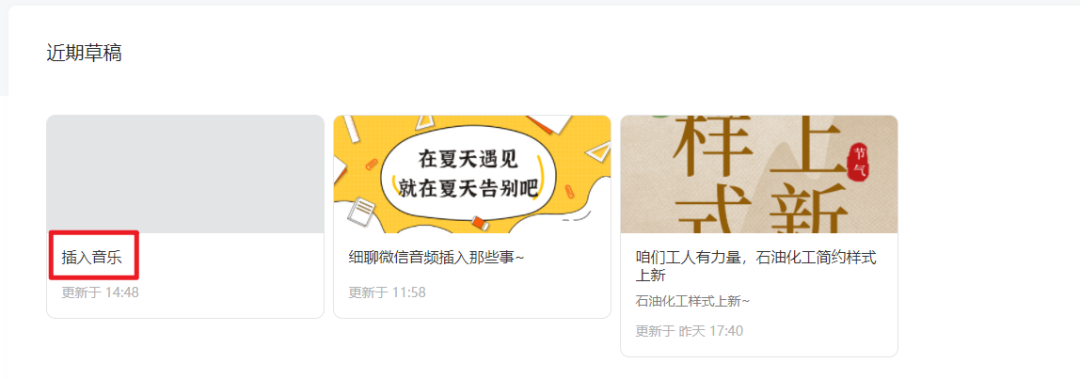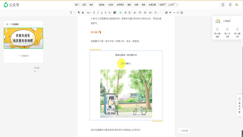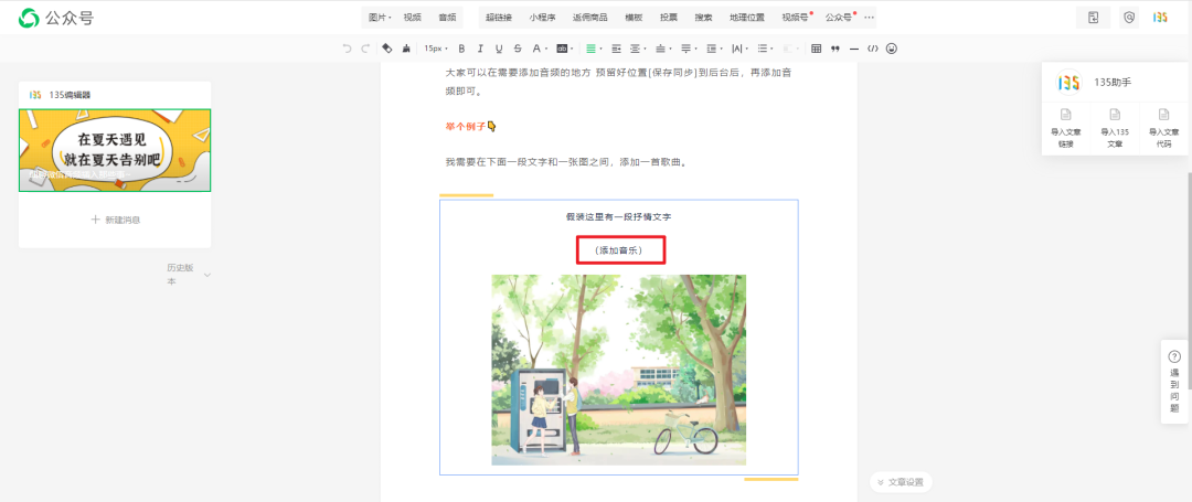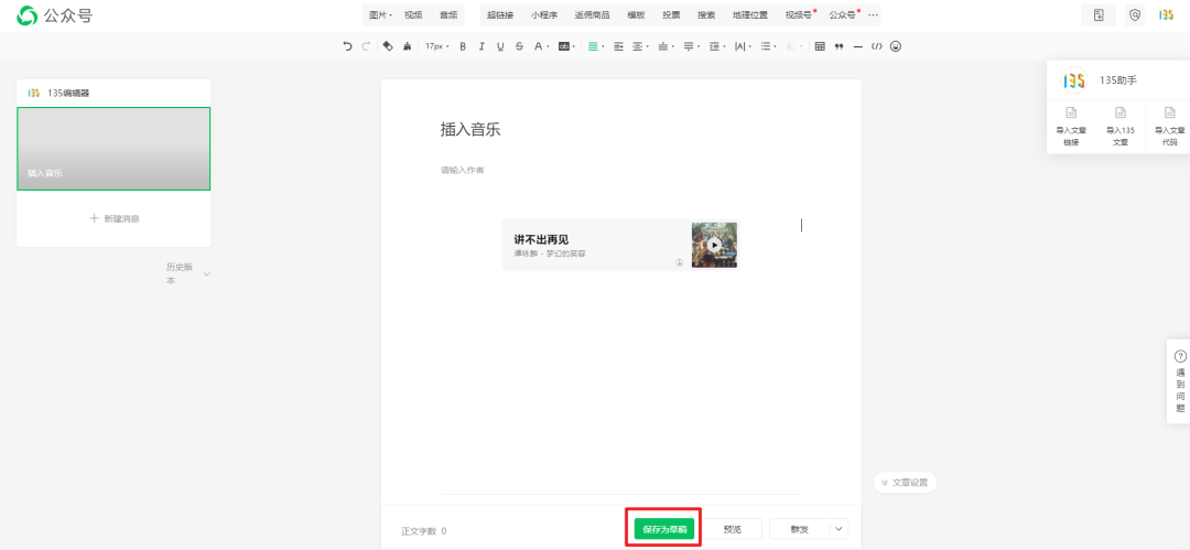 在微信公眾號后臺編輯區(qū)插入音樂。