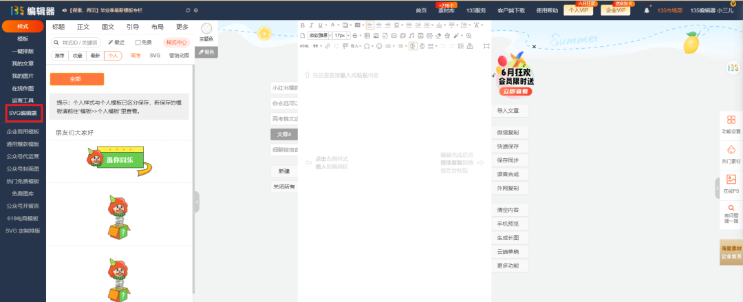 從135編輯器左側點擊svg編輯器。